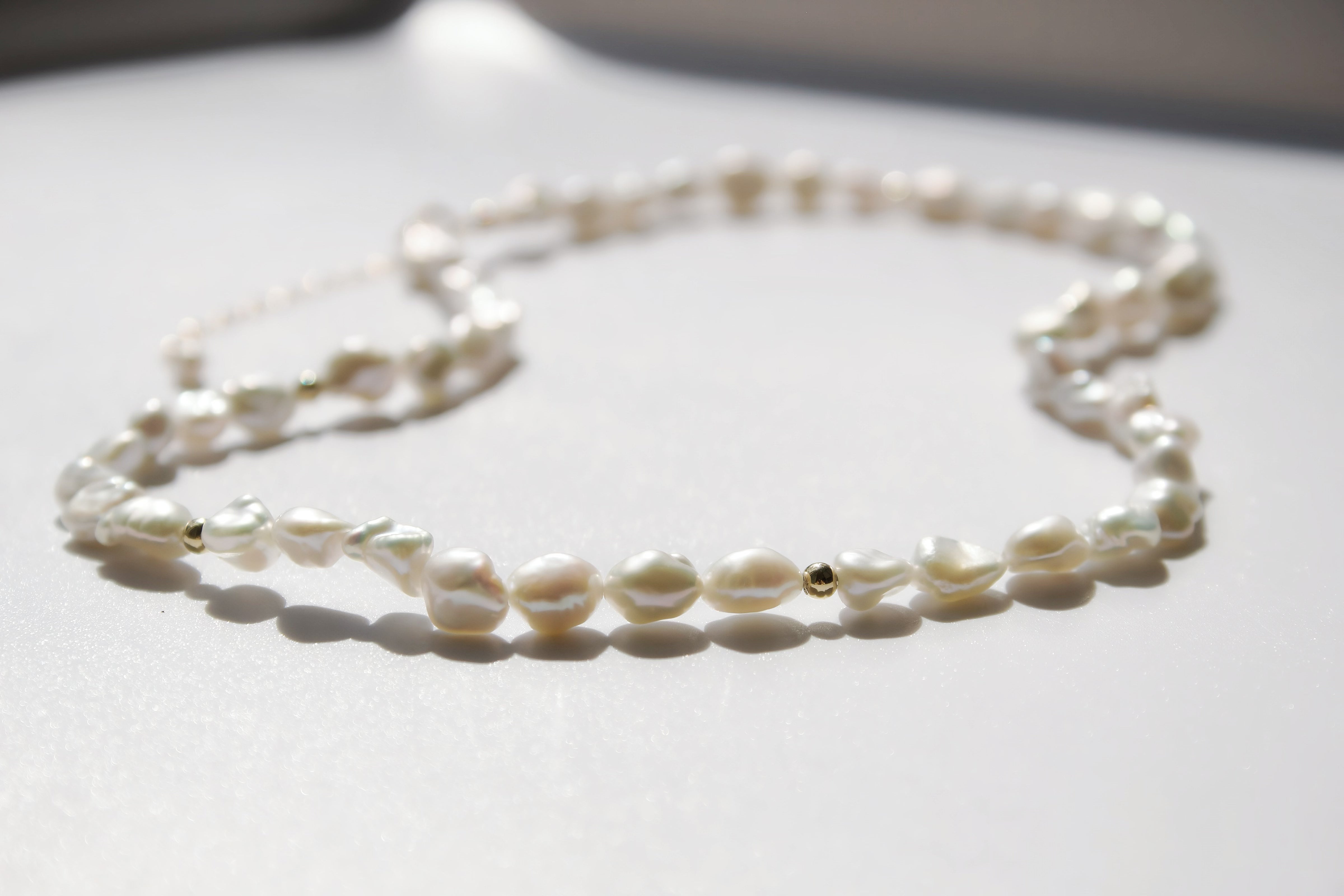 Kumiko - Japanese for "child of enduring beauty," is a necklace that embodies elegance that never fades. It is designed with luminous freshwater pearls, each one unique in its natural form, symbolizing individuality and grace. Intertwined with metal accents, the design reflects balance and harmony - qualities long associated with the meaning of Kumiko. This necklace is more than a piece of jewelry, it is a celebration of purity, sophistication, and timeless femininity.