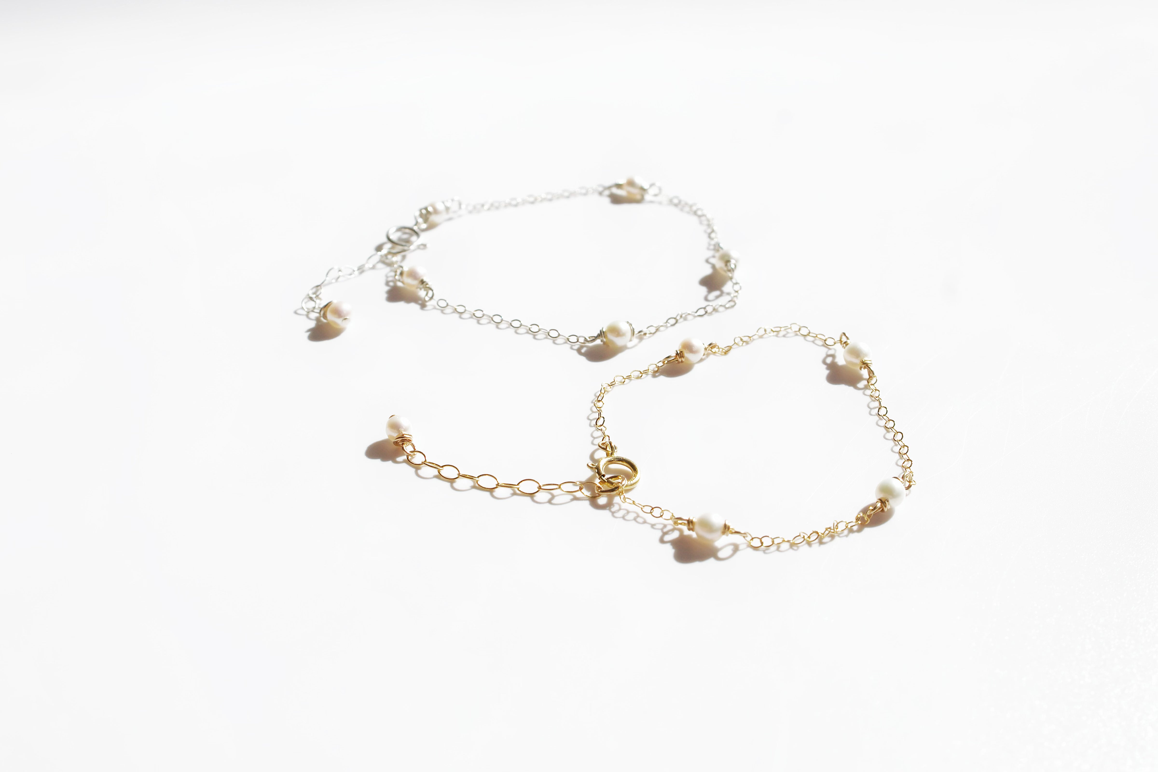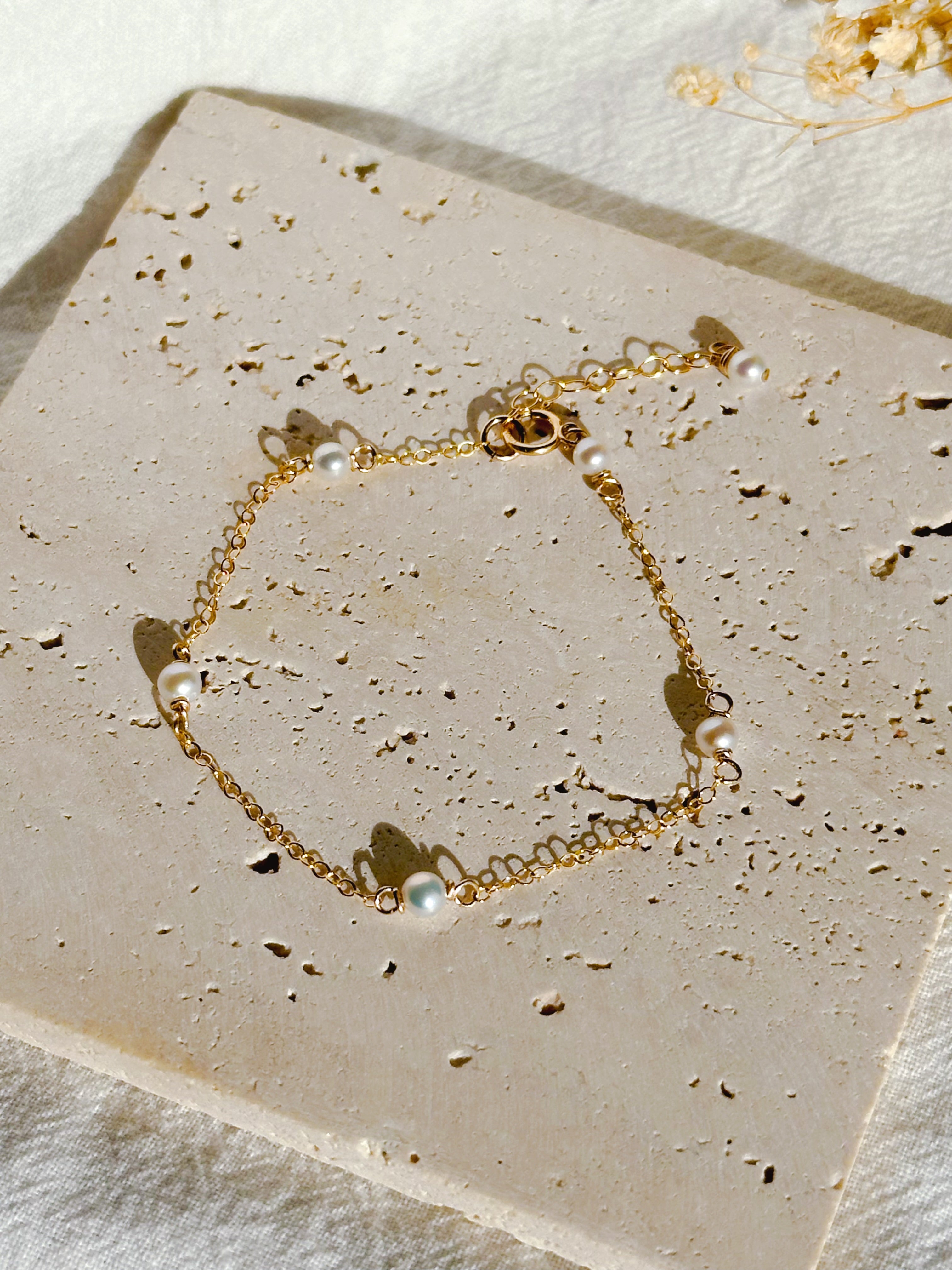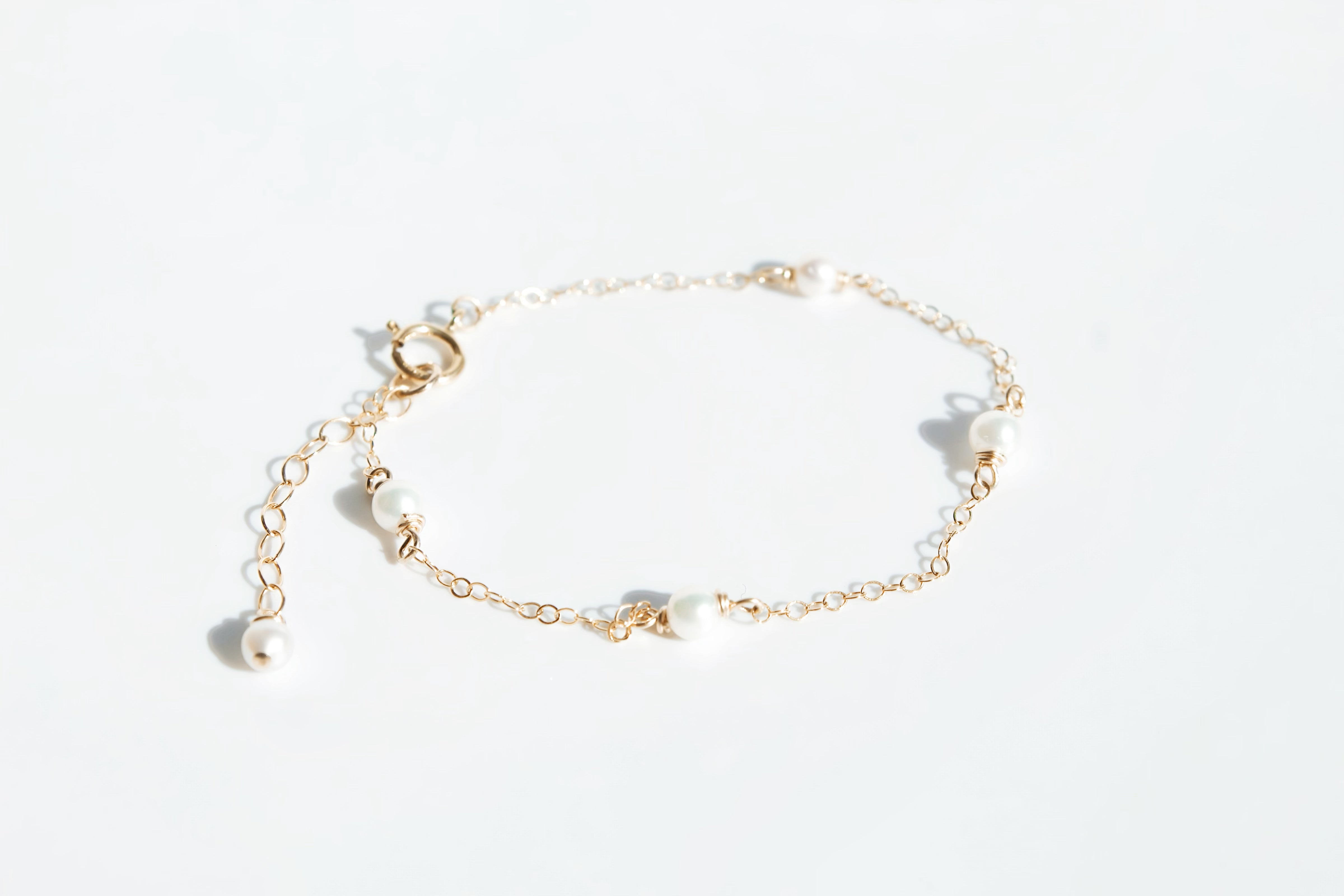 Upgrade your jewelry collection with the Hiromi Pearl Bracelet, available in both 14k gold filled and sterling silver finishes. Named after Hiromi, Japanese for "generous beauty," it symbolizes an inner beauty that flows outward. Designed with high-quality natural freshwater pearls and a dainty chain, it combines classic sophistication with modern minimalism. Crafted for versatility, this dainty pearl bracelet features an adjustable chain closure to ensure a secure and comfortable fit for almost any wrist size. The lightweight design makes it perfect for everyday wear, weddings, or bridesmaid jewelry. Talk about being pearlfect!
