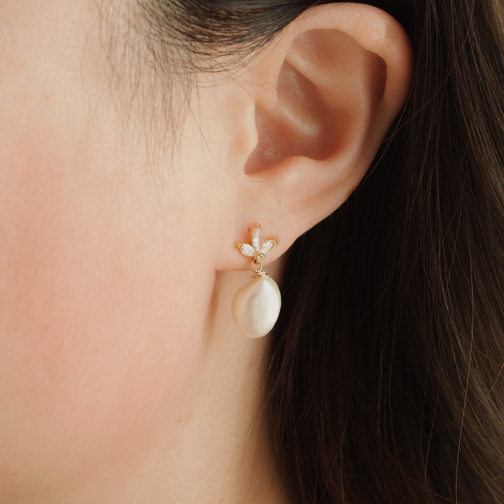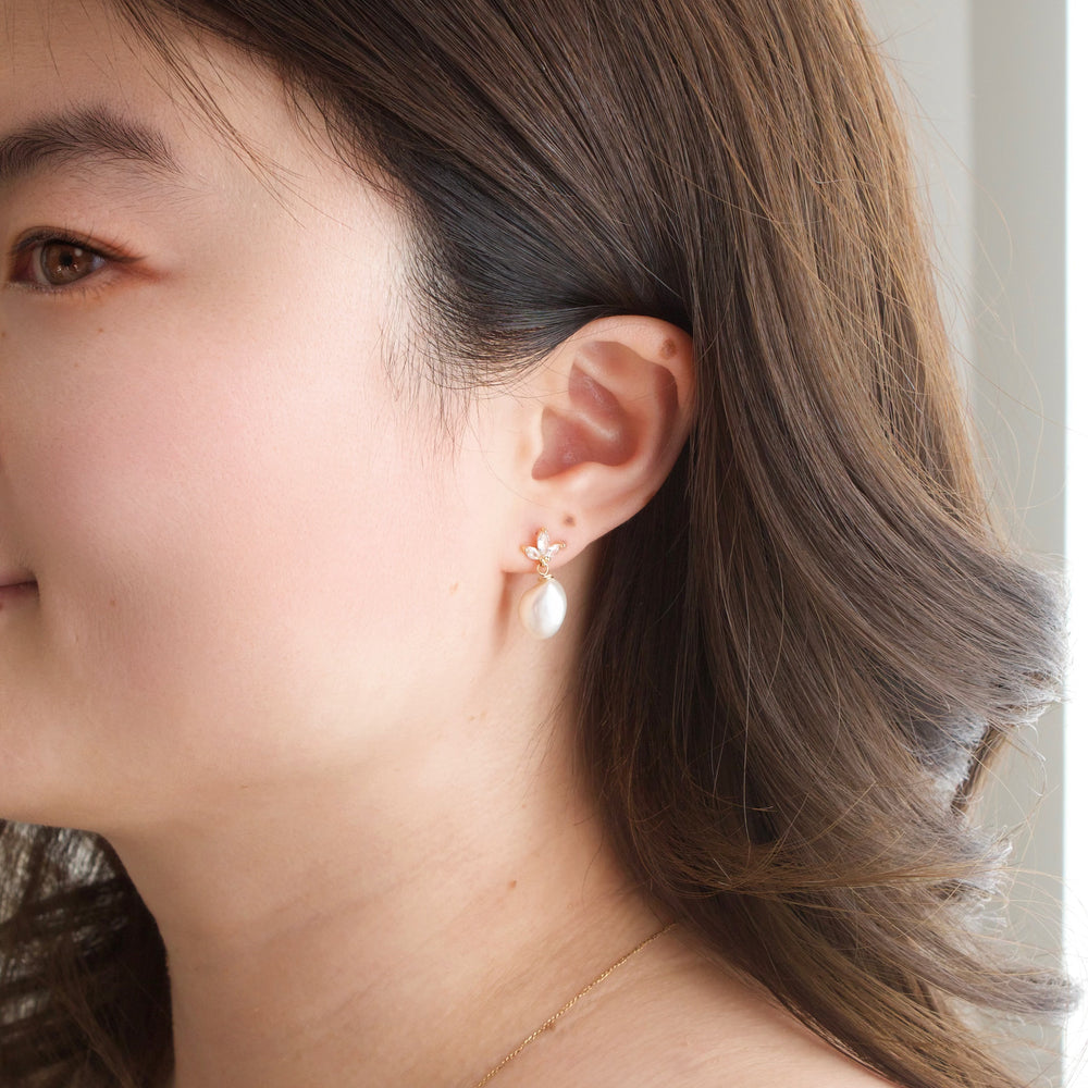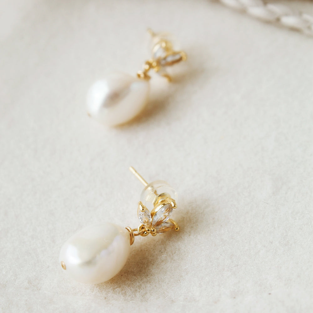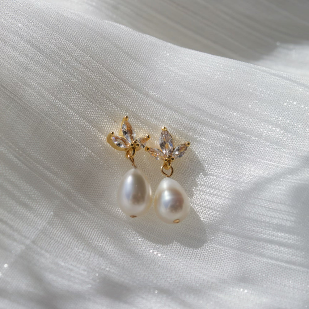These crystal leaf bridal crown earrings feature 9mm freshwater pearls, making them a stunning choice for both special occasions and daily wear. The elegant design is complemented by 14k gold vermeil findings, adding a touch of luxury. With limited stock, these earrings are a perfect addition to your collection for a refined, timeless look.