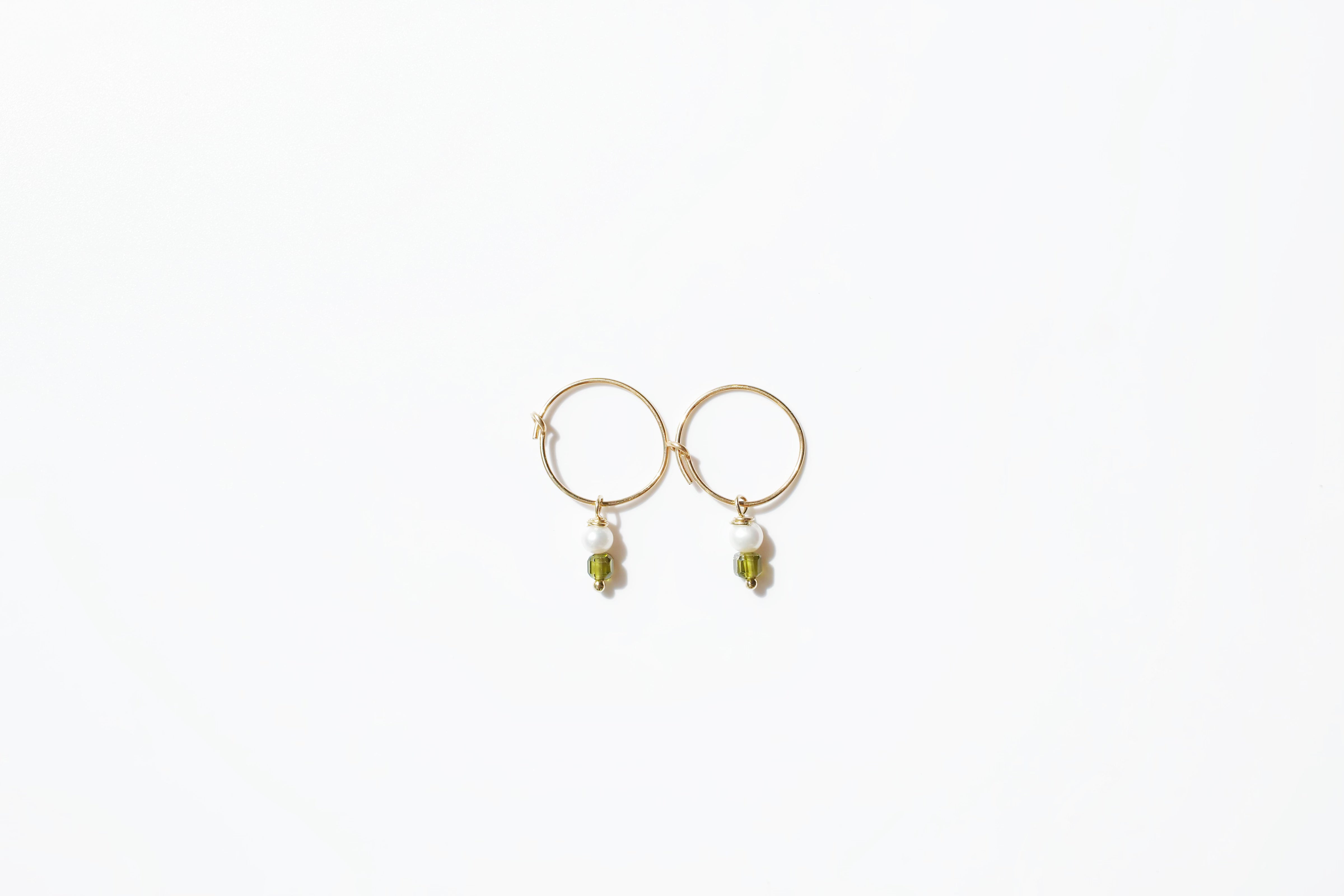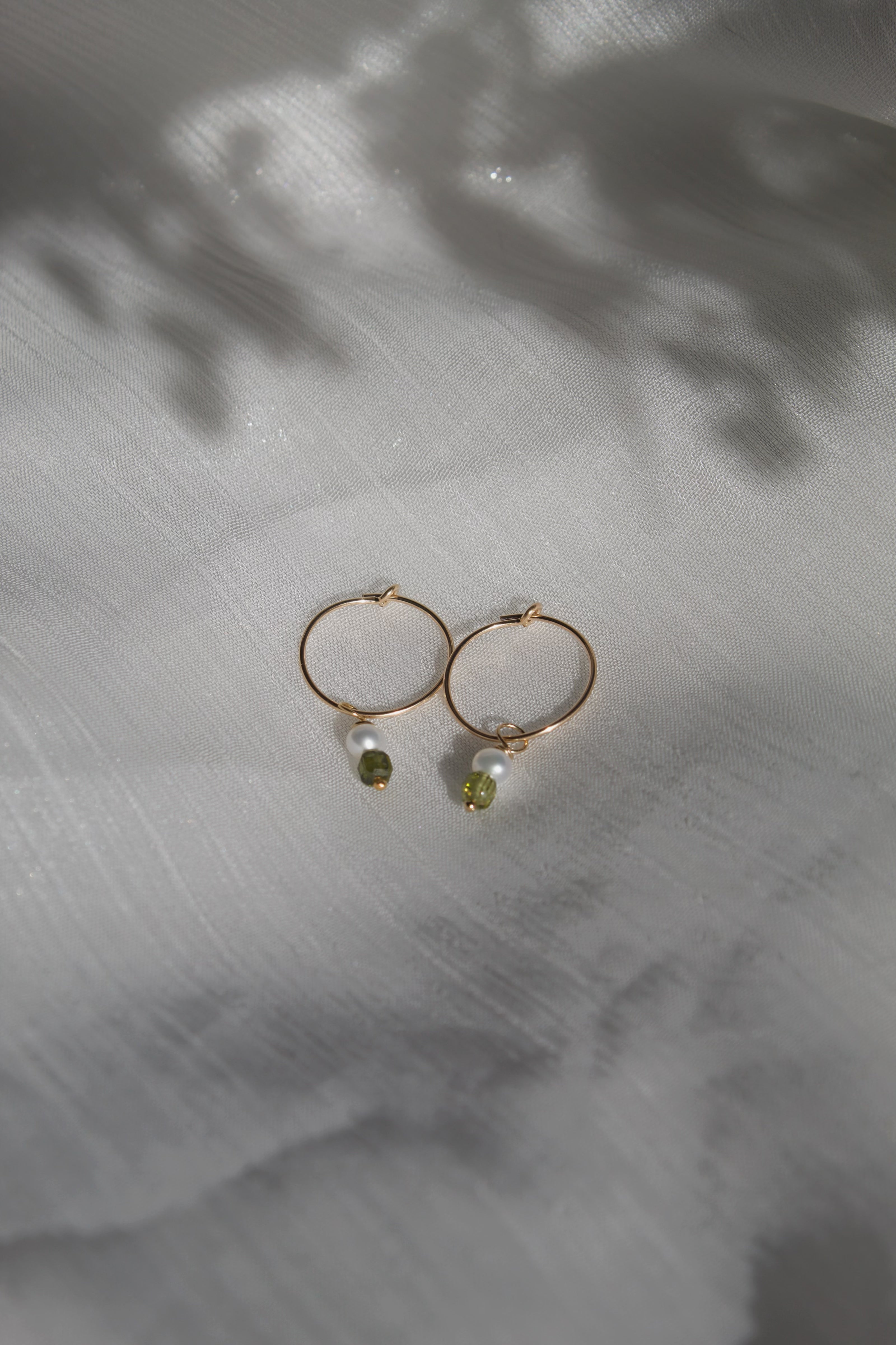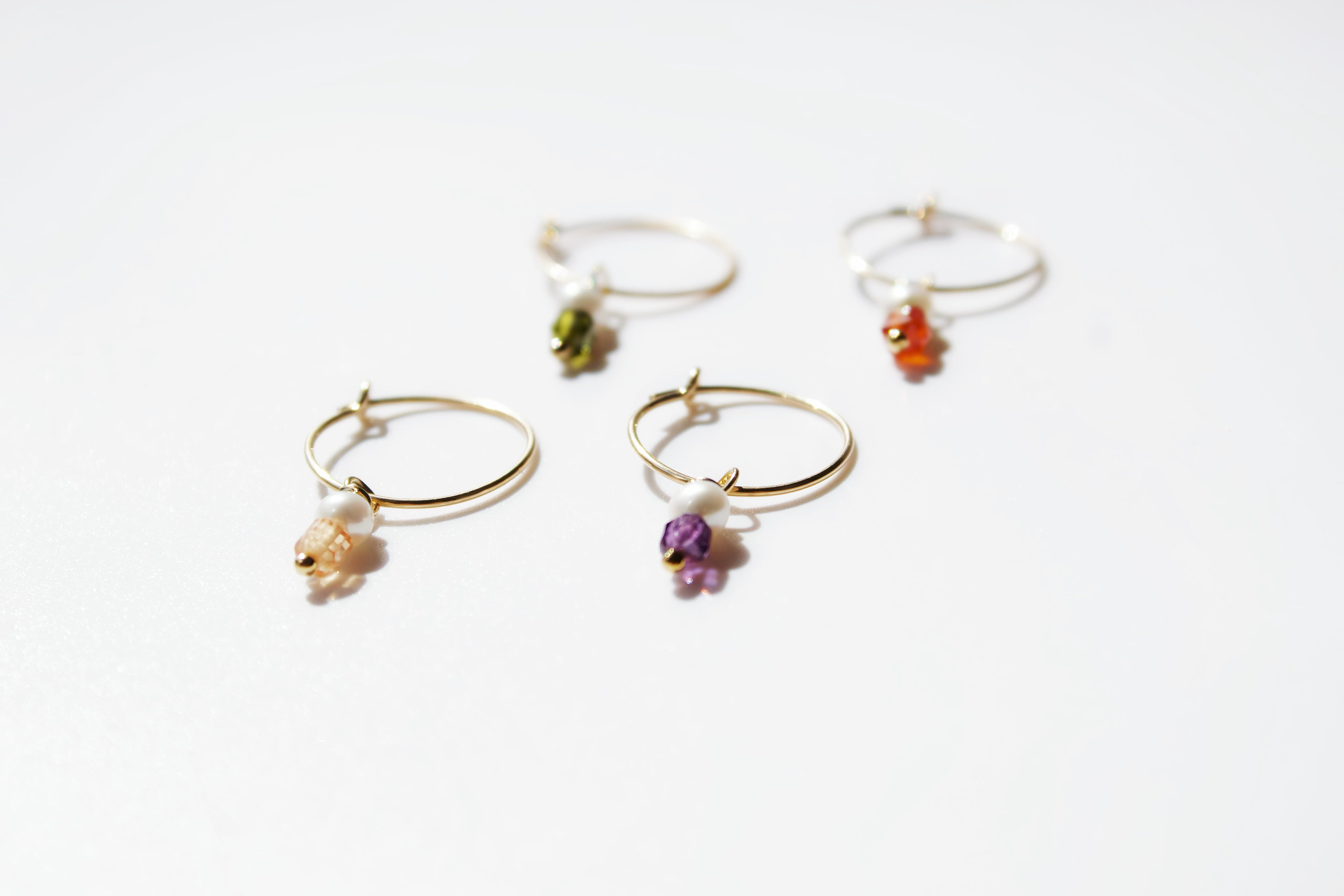 The Kairi Pearl Earrings feature a delicate balance of lustrous freshwater pearls and vibrant gemstones, thoughtfully arranged on minimalist 14k gold filled or sterling silver hoops. Inspired by the Japanese name Kairi, meaning "ocean village," these earrings capture the serene beauty of water and the harmony of natural elements. It evokes imagery of coastal air and quiet waves, moments of serenity where light meets the tide. Designed to move gracefully with you, these elegant earrings add a subtle sparkle and a touch of playfulness to any style.