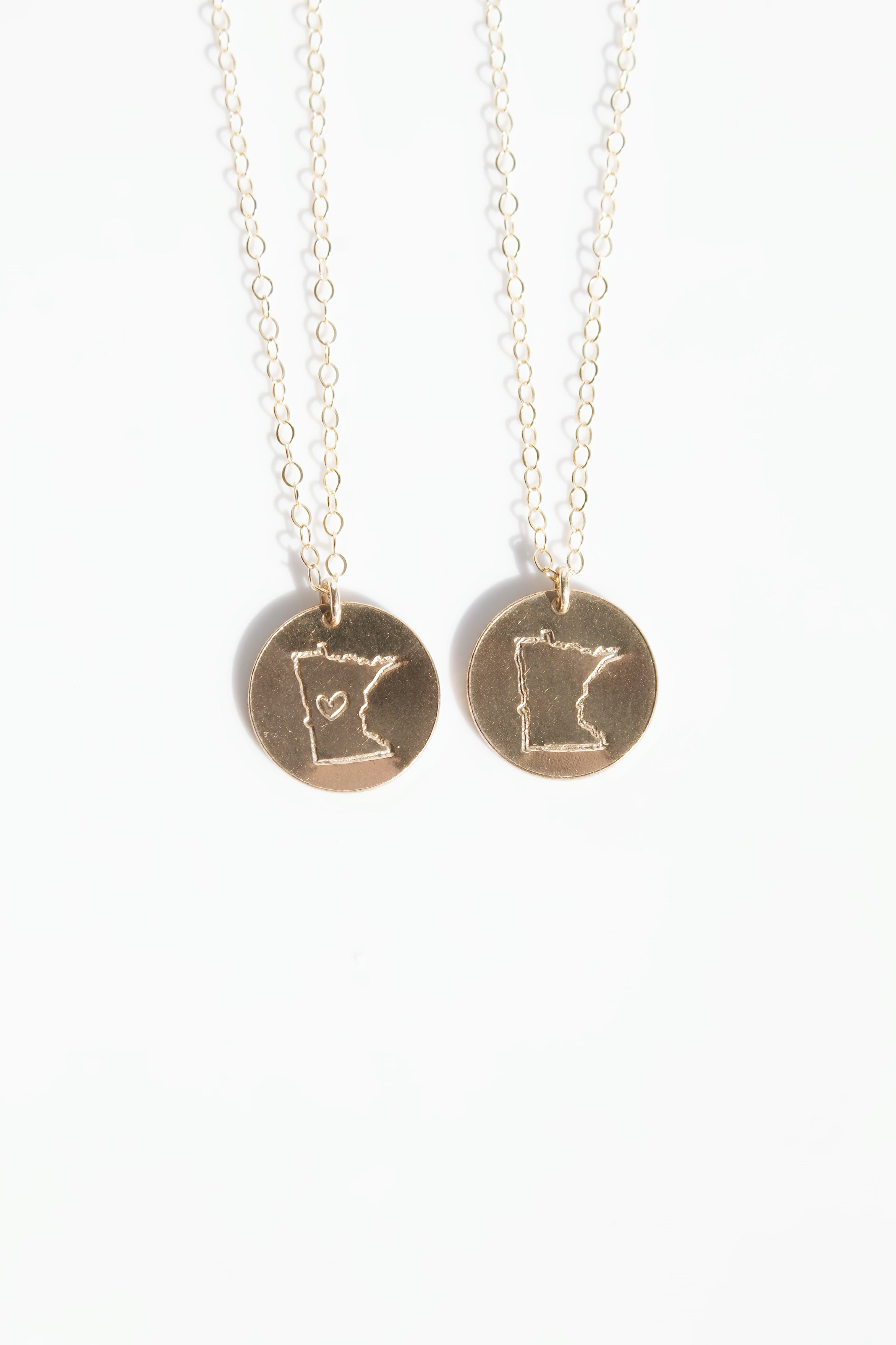Show off your home state pride with this custom hand-stamped state necklace. Made with high-quality 14k gold-filled material, this piece is not only stylish but also waterproof for lasting durability. The necklace features the iconic outline of the state of your choice, with the option to add a heart for a more personalized touch.