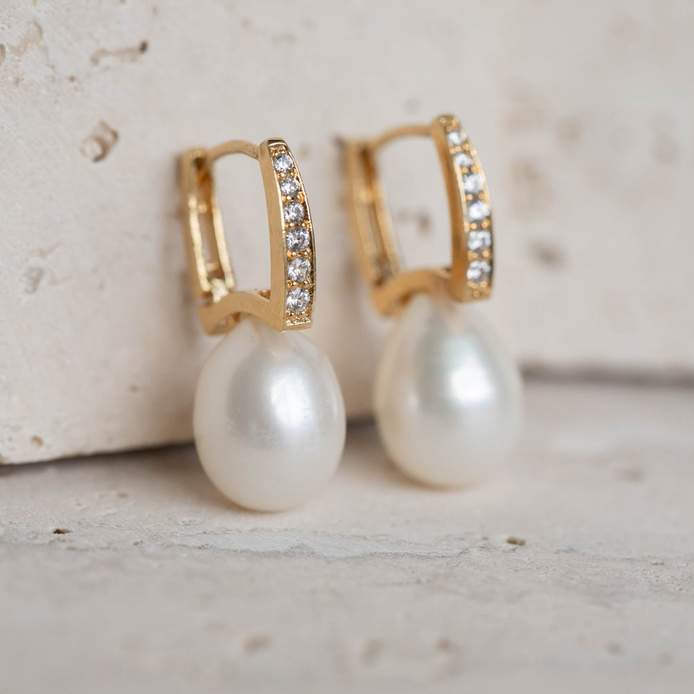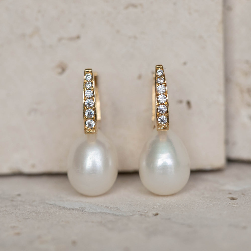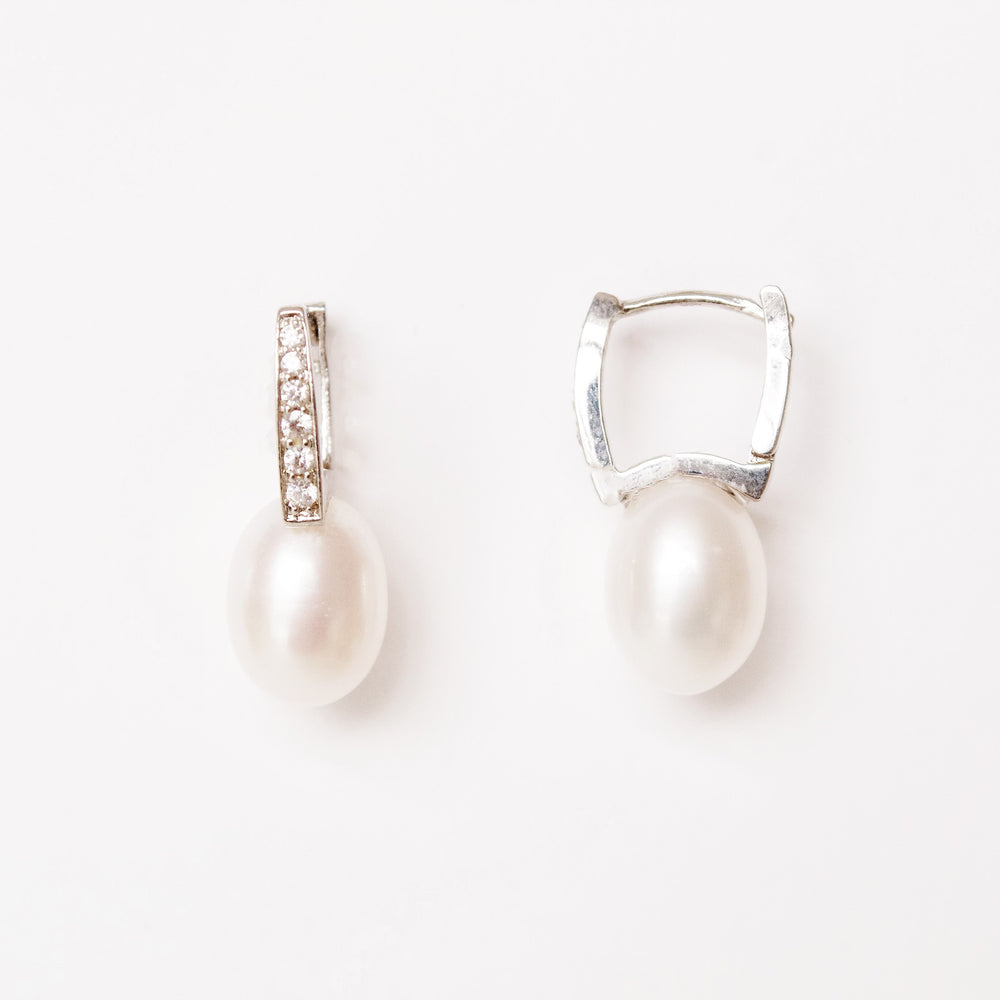 The Emiyo Pearl Earrings are a timeless blend of elegance and modern design. Featuring lustrous freshwater pearls suspended from sleek gold filled and sterling silver hoops, each earring is accented with a delicate row of sparkling diamonds for a refined touch. Perfect for weddings or everyday style, the Emiyo Pearl Earrings make a meaningful gift for her or a beauty to your own collection.