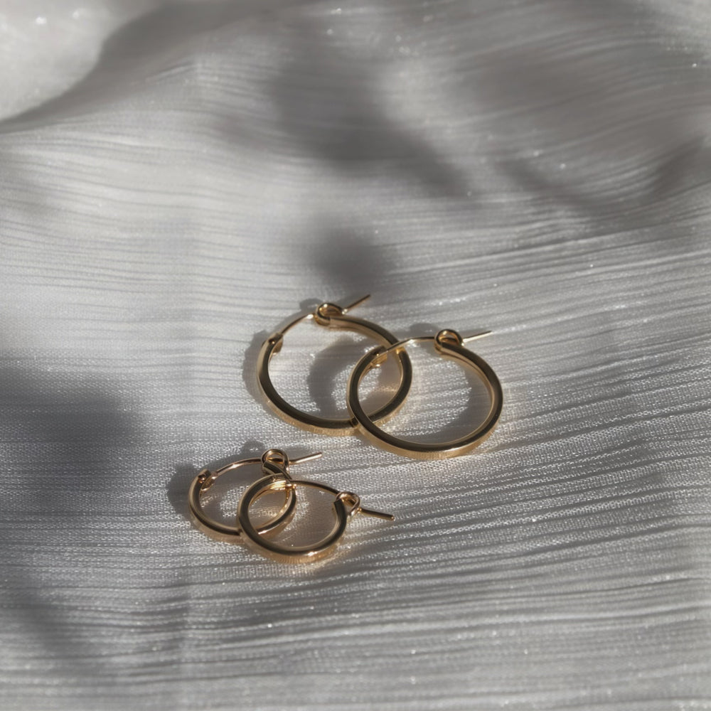 Shine bright with Halo Hoops, the must-have accessory for any occasion. These timeless hoop earrings come in high quality 14k gold filled and sterling silver, making them a versatile addition to your wardrobe. The perfect go-to for running errands, a night out, or as a daily staple.