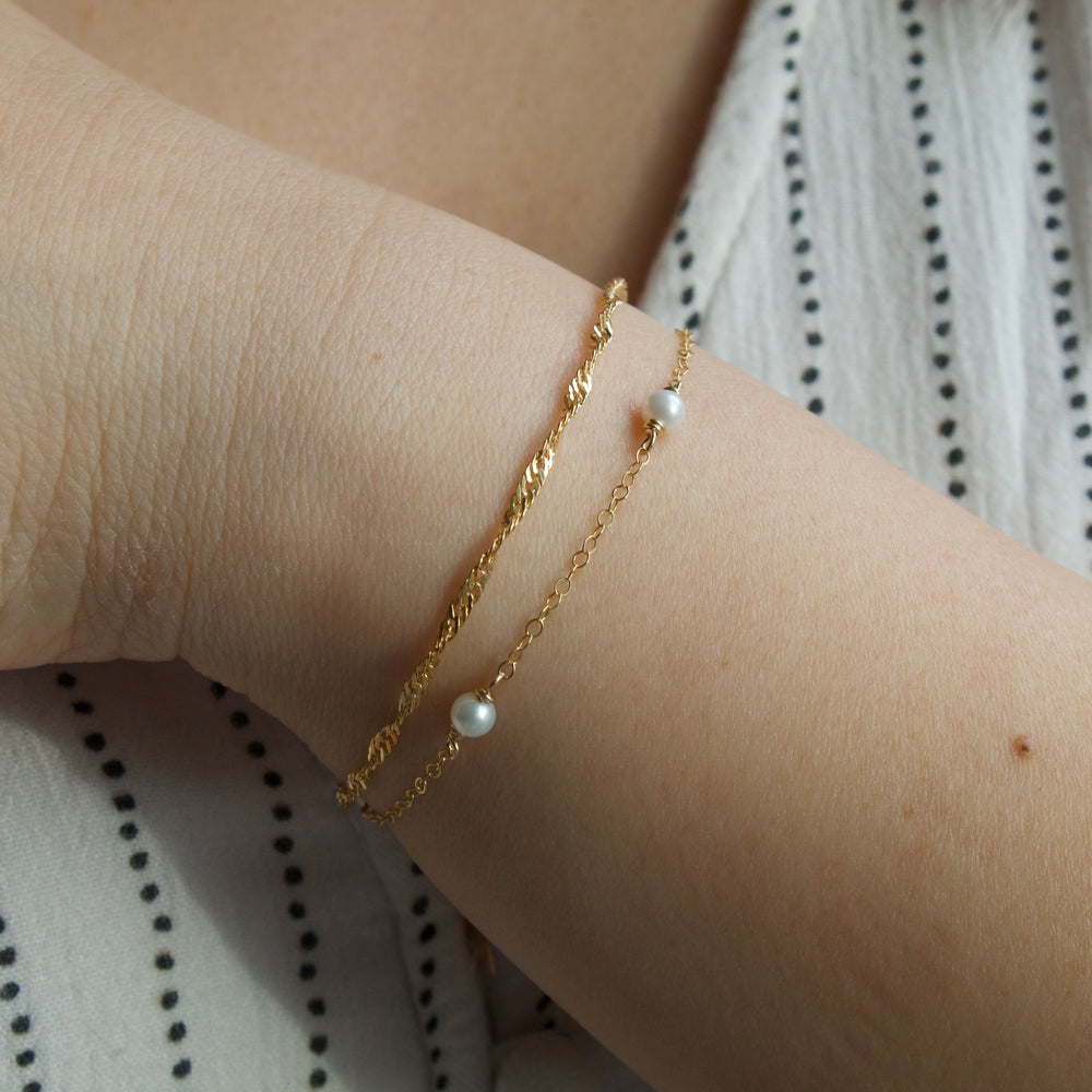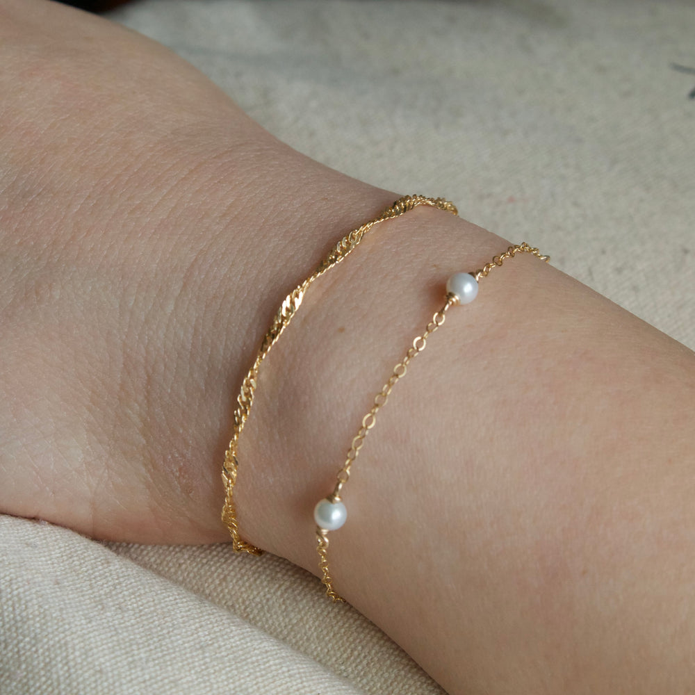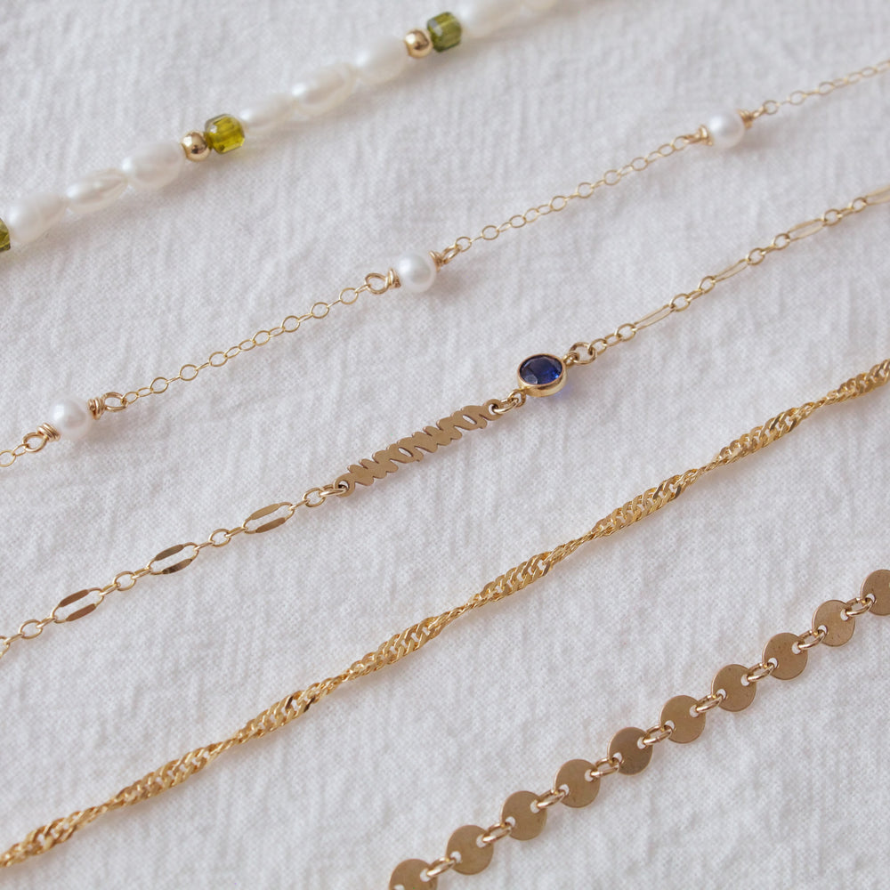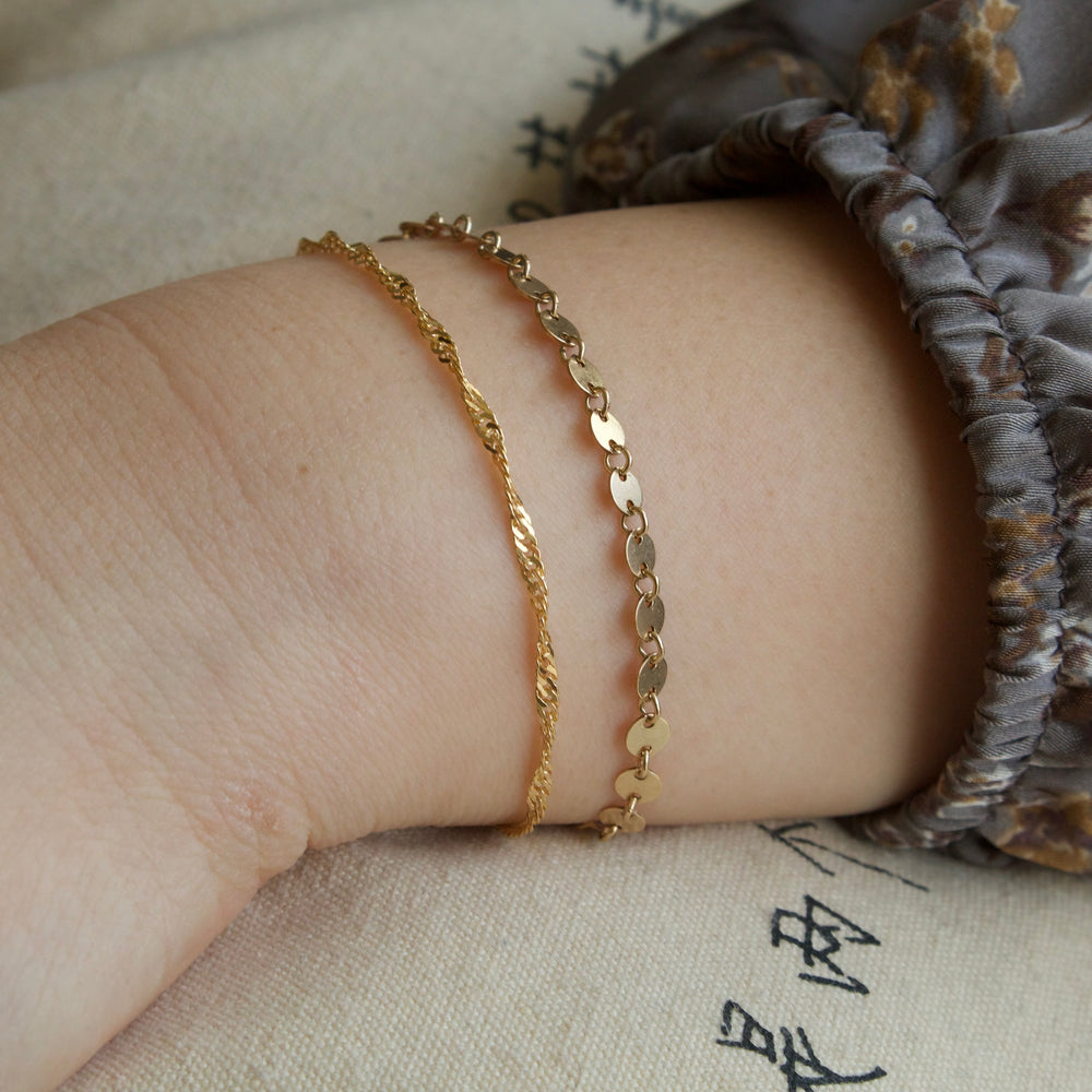 This classic and elegant bracelet is available in 14k gold filled or sterling silver. Its versatile design fits perfectly with any outfit and layers beautifully with other pieces.